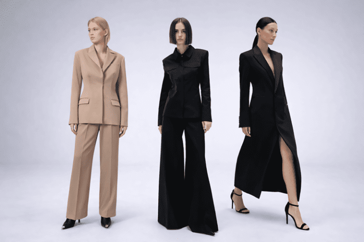 Идеальным аутфитом для делового ужина станут строгие элегантные жакеты-смокинги.